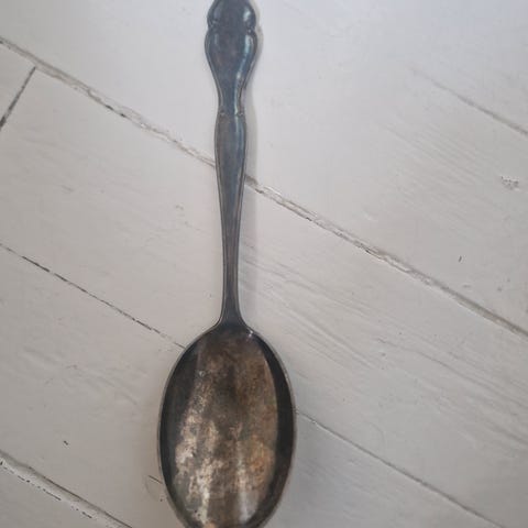 Arvet, gafler, skjeer, bordklokke (litt ustand), pokal...(eller liten vase)