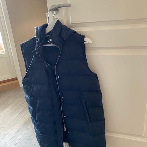 Fransa Lang Vattert Vest for kvinner i størrelse L. Vesten er beige og har en polstret, vattert design med hette. Den er lang i modellen og har glidelås foran. Passer til utendørs bruk og gir ekstra isolasjon.