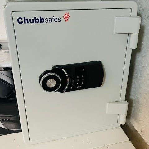 FireKing Model 6120 elektronisk kombinasjonslås med tastatur for sikker tilgang. Øvre delen er til pengedropp. Nedre delen får jeg ikke åpnet lenger. Øvre delen får jeg ikke låst lenger. Hvis du kan dette med kodelås får du en god safe til billig penger.