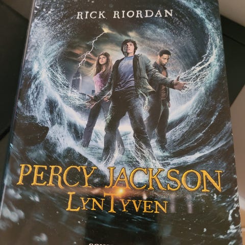 Rick Riordan Percy Jackson Lyntryven bok. Dette er en norsk utgave av fantasyboken som følger karakteren Percy Jackson i hans eventyr. Boken er utgitt av forlagene Vigmostad og Bjørke.