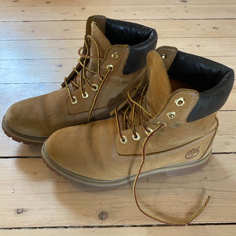 Pent brukte Timberland sko. Brukt av et barn