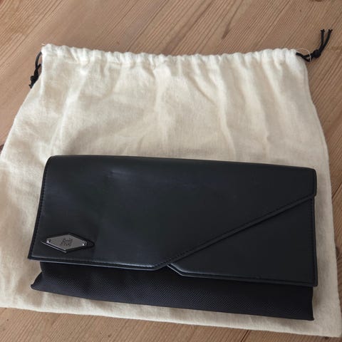 Selger en elegant og tidløs Armani Jeans veske i sort, med quiltet mønster og blank lakert finish. Vesken fremstår som som ny / meget lite brukt og er svært pent behandlet.