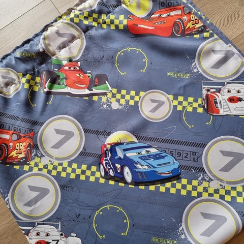 Selger ett fag, altså 2 gardiner til et vindu. Er lys tette med disney cars motiv på.