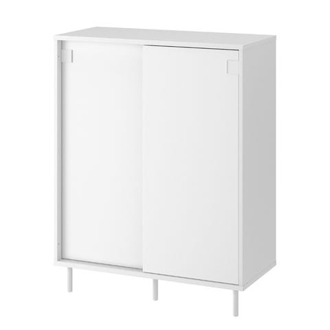 IKEA Skåp med to dører i hvit farge. Møbelet har en enkel og funksjonell design med plass til oppbevaring av klær og andre gjenstander. Skapet er laget av materialer som sikrer holdbarhet og passer for ulike rom i hjemmet.