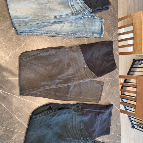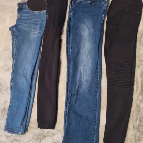 1: olabukse, superskinny str 38, liten hull i det ekstra stoffet øverst på buksa