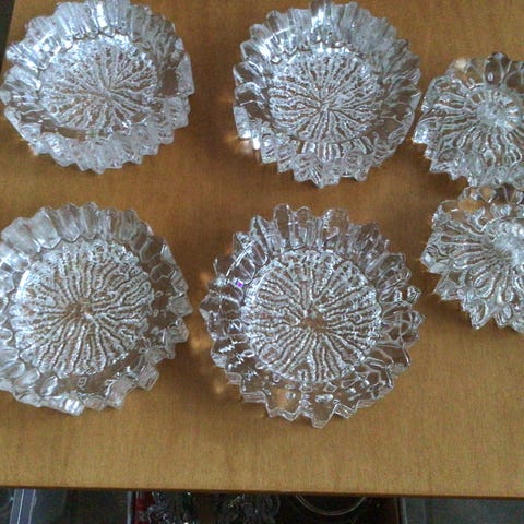 Selger fin vintage tredelt glass serverings fat. Diameter på toppen 18 cm, høyde 4 cm. Kan brukes som frukt skål eller til snaks. Kan sendes mot porto. Bruker VIPPS. Pris 120 kr. Kan sende mot porto