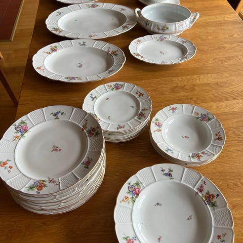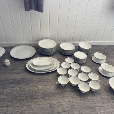 Lite brukt og heilt utan skader eller merker Rosenthal Classic Rose kvitt servise selges samla eller i deler. Deler av serviset er ubrukt, det som er brukt har vært brukt i hovudsak i 2 konfirmasjonar.