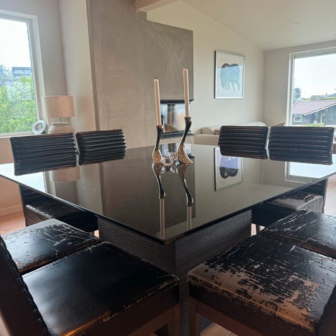 Stolene ser godt brukt ut, dvs slitt som bildene viser, men selve brukskomforten er fortsatt meget god. Tilstanden på stolene er altså god, men kantene er slitt/flasset noe av.