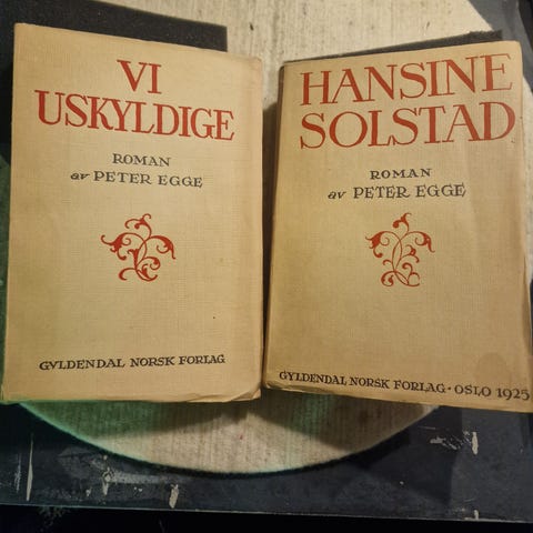 Meget pent eksemplar av Peter Egges roman Narren fra 1917. Originalbundet i rød helsjirting, med skarpe kanter, rene sider og minimal alderstegning. Papirkvaliteten er frisk til å være over hundre år gammel. Ingen løse sider, ingen skrift eller foksing. Et usedvanlig velholdt eksemplar av en tidlig Egge-utgivelse, som sjelden dukker opp i denne tilstanden.
