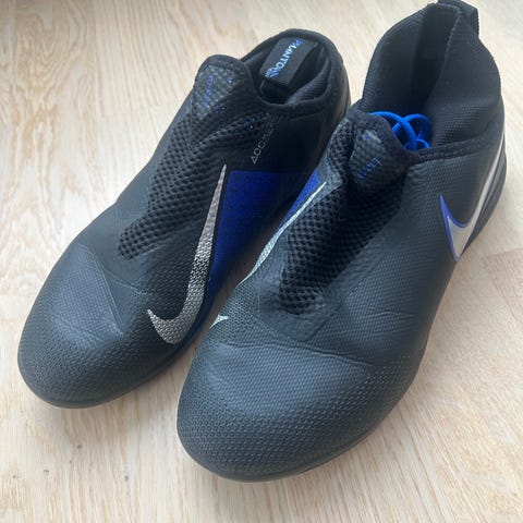 Laget med syntetisk materiale og designet for fotballspillere. Skoene har en lav profil og gummisåle for grep på innendørs og hardt underlag.