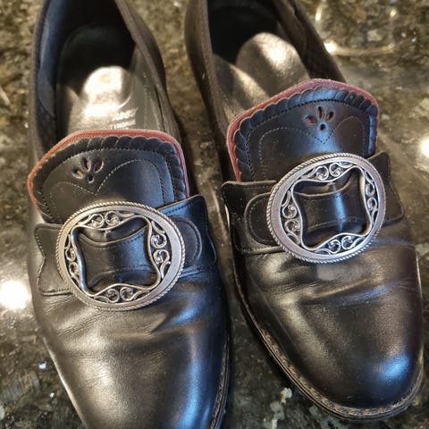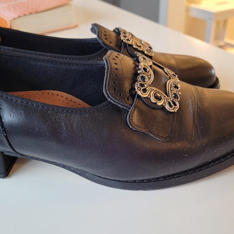 Praktisk talt ubrukte bunadsko fra 2018. Fra Klaveness skofabrikk. Type "Gerd". Selges da de ikke er i bruk