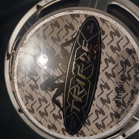 En PeaveyTriple X 412 i slitet yttre. Insida og elementer er dock i top stand og fungerer som det skal