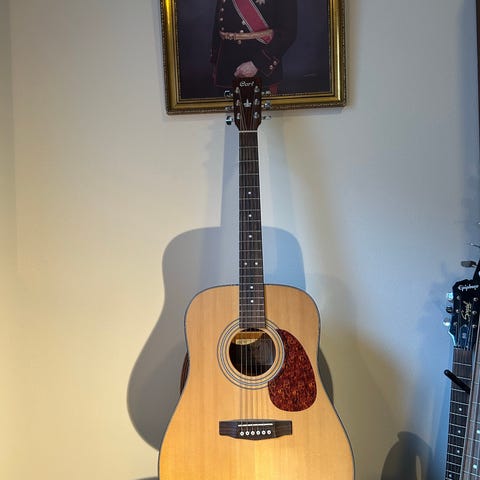 Selger en SX PDG CE Spider akustisk-elektrisk gitar i helsvart med matching Spider Mother-of-Pearl på hodestokk. Låter flott både akustisk og forsterket.