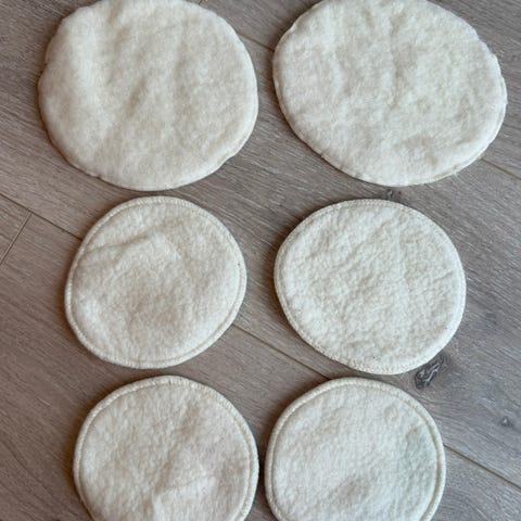 Två par pent brukt de tre andre paren har noen hull i seg.