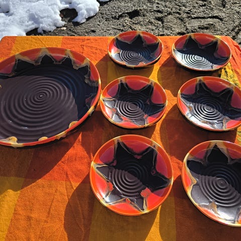 Seks dessertasjetter fra Egersund Fajanse