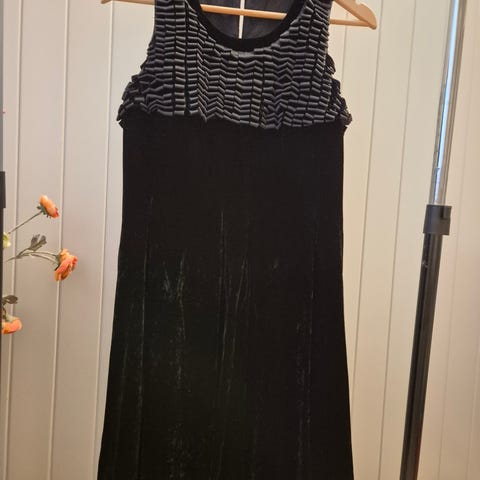 Part Two Bluse i svart fløyel, størrelse S for damer(stor i størrelsen). Blusen har en løs passform med v-hals og korte ermer. Materialet er fløyel, som gir en myk og glatt tekstur. Egnet for hverdagsbruk eller mer formelle anledninger avhengig av styling.