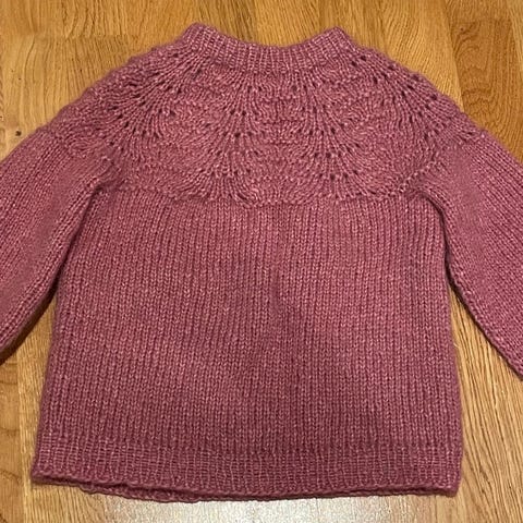 Strikket ullgenser til jente i rosa. Kun brukt 2 ganger.