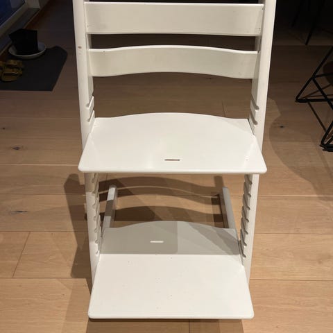 Hvit klassisk Stokke tripptrapp stol selges.