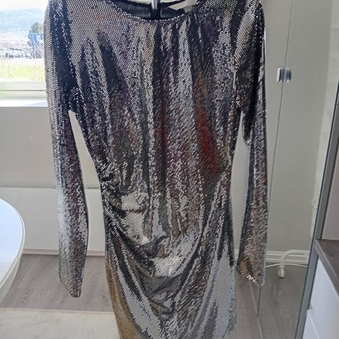 Nydelig sett med skjørt og langermet topp i paljetter / glittertråder fra KappAhl. Topp i Medium og skjørt i Small, men sett kan brukes av både small og medium vil jeg si. Jeg har hvertfall brukt det som medium. Strikk i livet på skjørtet så det er fleksibelt. Perfekt til julebord og nyttår!🩷 alt er helt og fint! Kostet 1200,- nytt.