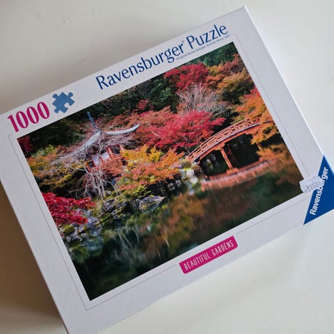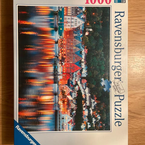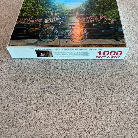JULEGAVETIPS. 1000 Brikkers Puzzle med motiv av blomstrende frukttre og mølle