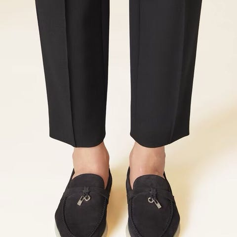 Loro piano dummer walk I beige semsket skinn, størrelse 38. Skoene har dekorative detaljer i rosa og metall. Passer til sommer og vår med buske og kjole.