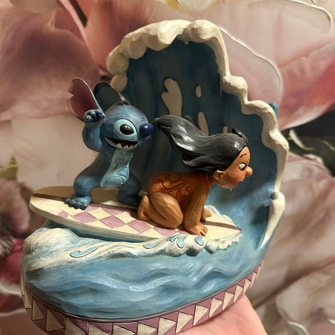 Disney Hula Stitch statue fra Beast kingdom selges, fra Leroy and Stitch. Aldri stått utstilt, åpnet kun for inspeksjon, kommer i alle originale esker. Burde hentes, men kan også sendes.