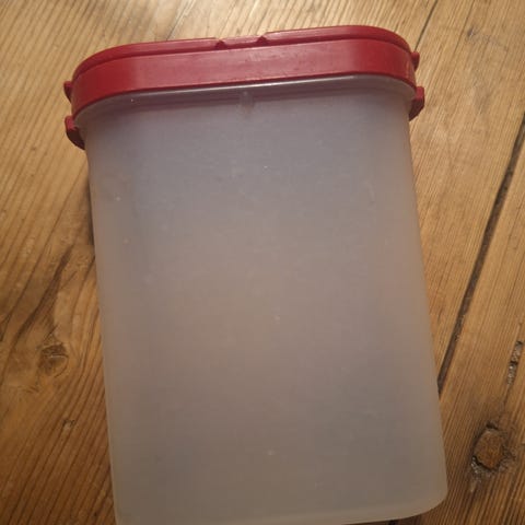 Stor Erik Kold plast oppbevaring med rosa lokk
