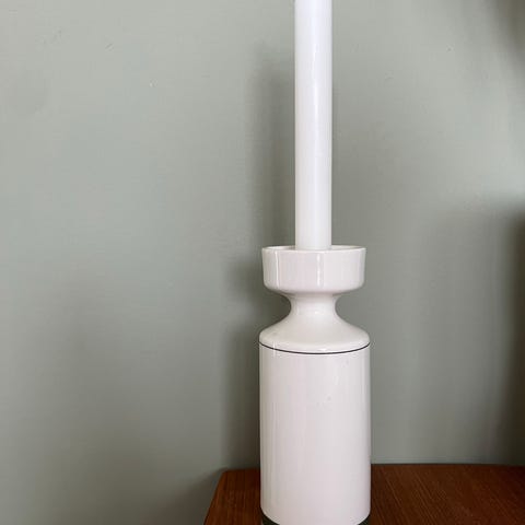Figgjo porselensvase eller lysestake, design fra midten av 1900-tallet med dekor av røde roser. H=17,5 cm, diameter ~ 6/6,5 cm