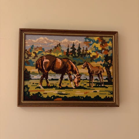 Koselig motiv i stramei. Hjemmelaget solid ramme.