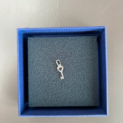 Selger et nydelig lite gullfarget anheng med glitrende stener