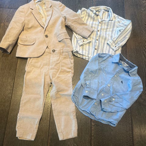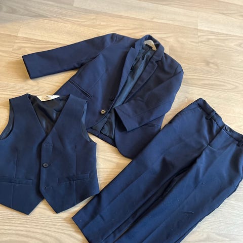 Penklær. Lyse blå dress med jeans og 2 skjorter. Dress er i bomull. Det hvite skjørt et 55% lin. Kan sendes eller hentes ved Solli plass i Oslo