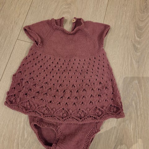 Hjemmestrikka ullkjole i nydelig mørk rosa farge. Praktisk med knapper under