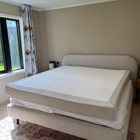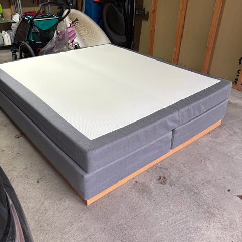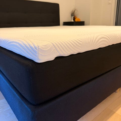 Begge liggesidene på madrassen har fast form. Vises her frem uten overmadrass, da den skal beholdes videre.