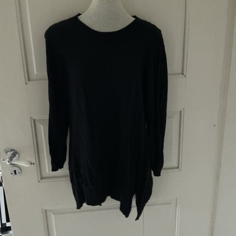 Marc Cain genser i ull, størrelse M, farge svart. Genseren er designet for kvinner og har en enkel, klassisk stil med rund hals og 3/4 lengde på ermene. Materialet er ull, som gir varme og komfort. Rett modell, ikke ettersittende. Nyprisen var 1900kr. Kan sende med post