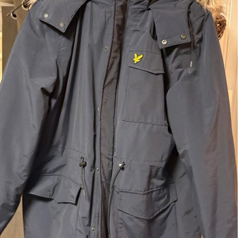 Stoffjakke med hette og kontrastdetaljer fra LYLE & SCOTT. Glidelås foran og justerbar nederst og rundt hetten. To lukkbare lommer på sidene og en innerlomme. Liten merkelogo på venstre bryst.