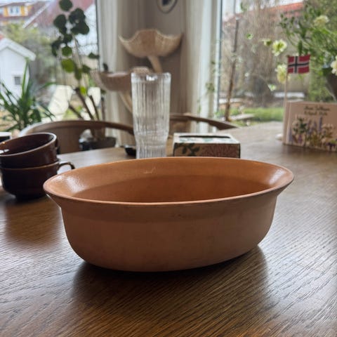 Vintage brun ildfast form. Krakeleringer og noen skader – se bilder. Har brukt den til blomster.