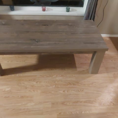 Salongbord kjøpt på Classic møbler Vestby for ca.10 år siden. Pent brukt, men med noen bruksskader bl.a. ett par merker fra varme kopper. «Steinplaten» i bunn er av glass som tåler mye. Selve bordplaten er noe mindre enn målene som er oppgitt, da vi har målt fra der bordbena i stål stikker utenfor.