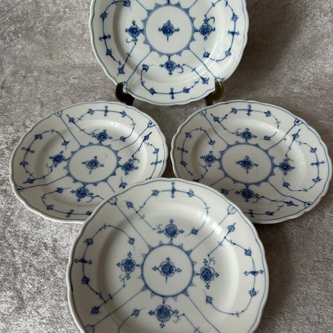 Har 8 stk Figgjo Blåklokke asjettar som eg selger for kr 25 pr stk.