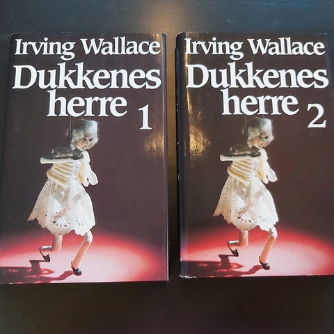 Irving Wallace Dukkenes herre 1 og 2. De fokuserer på temaer som makt, konspirasjoner og menneskelige relasjoner.