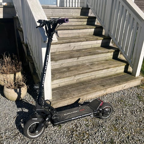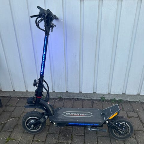 Helt og pen sparkesykkel. Denne typen går over 20 km og er ikke klassifisert som lovlig. Bra med effekt og fart.