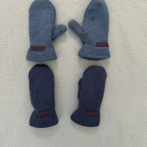 Ubrukte hjemmestrikkede votter. Str 1-2 år