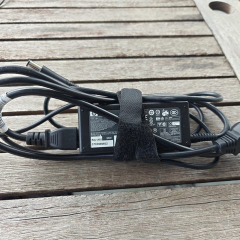 USB Power Adapter strømadapter med USB-C-kabel. Adapteren har en effekt på 65W og er svart i farge.