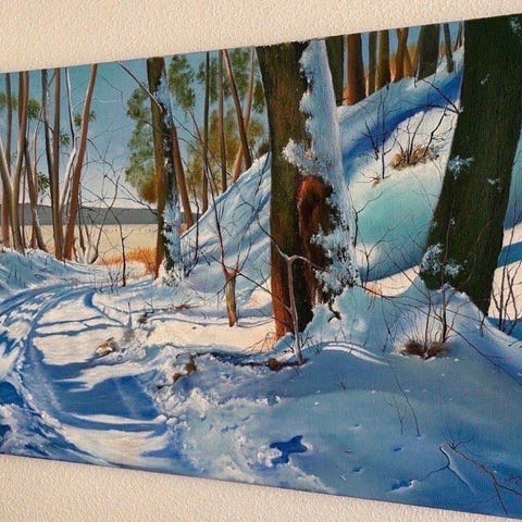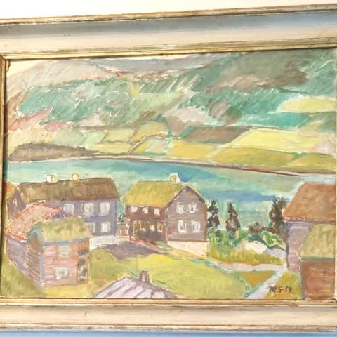 Oljemaleri malt med olje på lerret. Maleriet er signert. På baksiden av bildet står det "Holger Omejer.