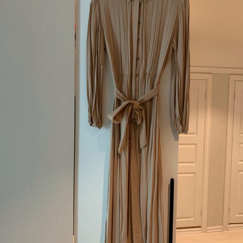 Kjempefin maxikjole i stoff som faller fint. Kjolen er veldig flatterende og behagelig på. Fargen er latte.