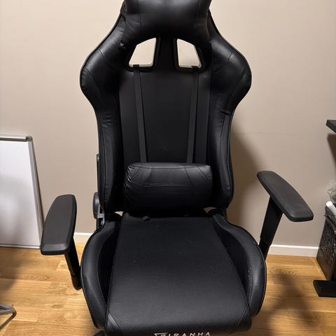 Regulerbar game stol gies bort. Det er noe slitt i stoffen som det står på bildet men helt bruktbar. Kjøpt fra Elkjøp for ca 2000 kr.