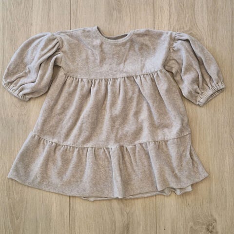 Kjolen er brukt få ganger , men fått en utdratt tråd og en hengende tråd ved arm.