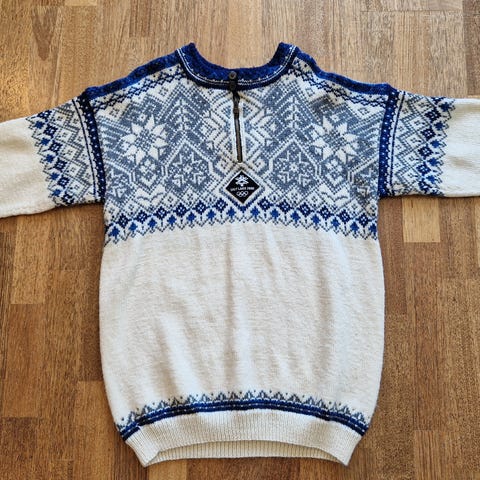 OL-genseren fra Nagano 1998 i 100% ull selges. Tykk og varm med glidelås og knapper i halsen.