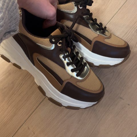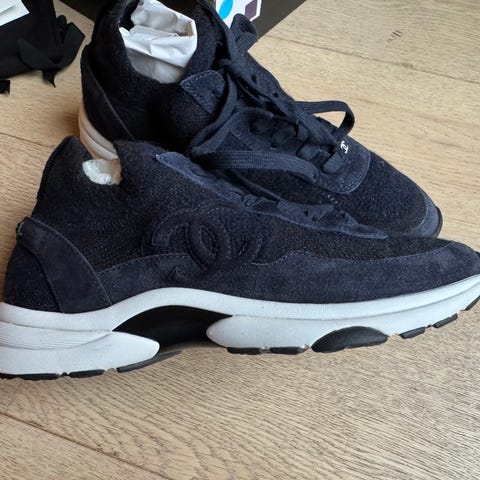 Chanel Sneakers joggesko i beige farge, størrelse 38. Laget i Italia. Skoene har snøring og en kombinasjon av materialer som gir et moderne og komfortabelt design.