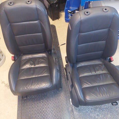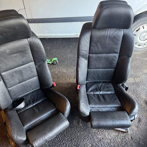 Selger Recaro stoler i svart skinn , disse har stått i en bmw e36 m3 . Men passer mange flere om man skifter understellet.