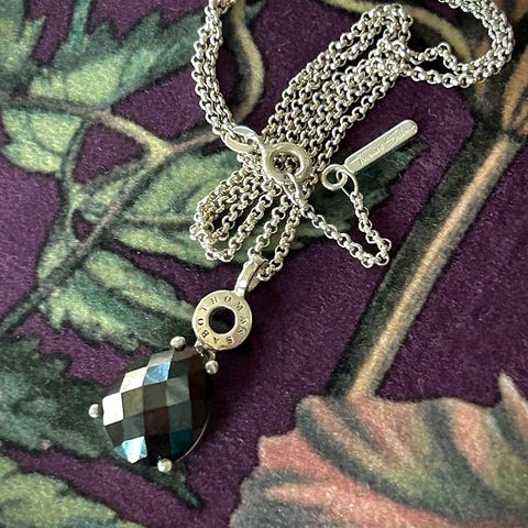 Lekker anheng (925 Sølv) fra Thomas Sabo sendes med sølvkjede. Anhenget kan brukes begge sider. Ene siden er med krystaller. Dene ene krystallen er falt av som du kan se av bildene, men har ikke stort betydning for bruk.